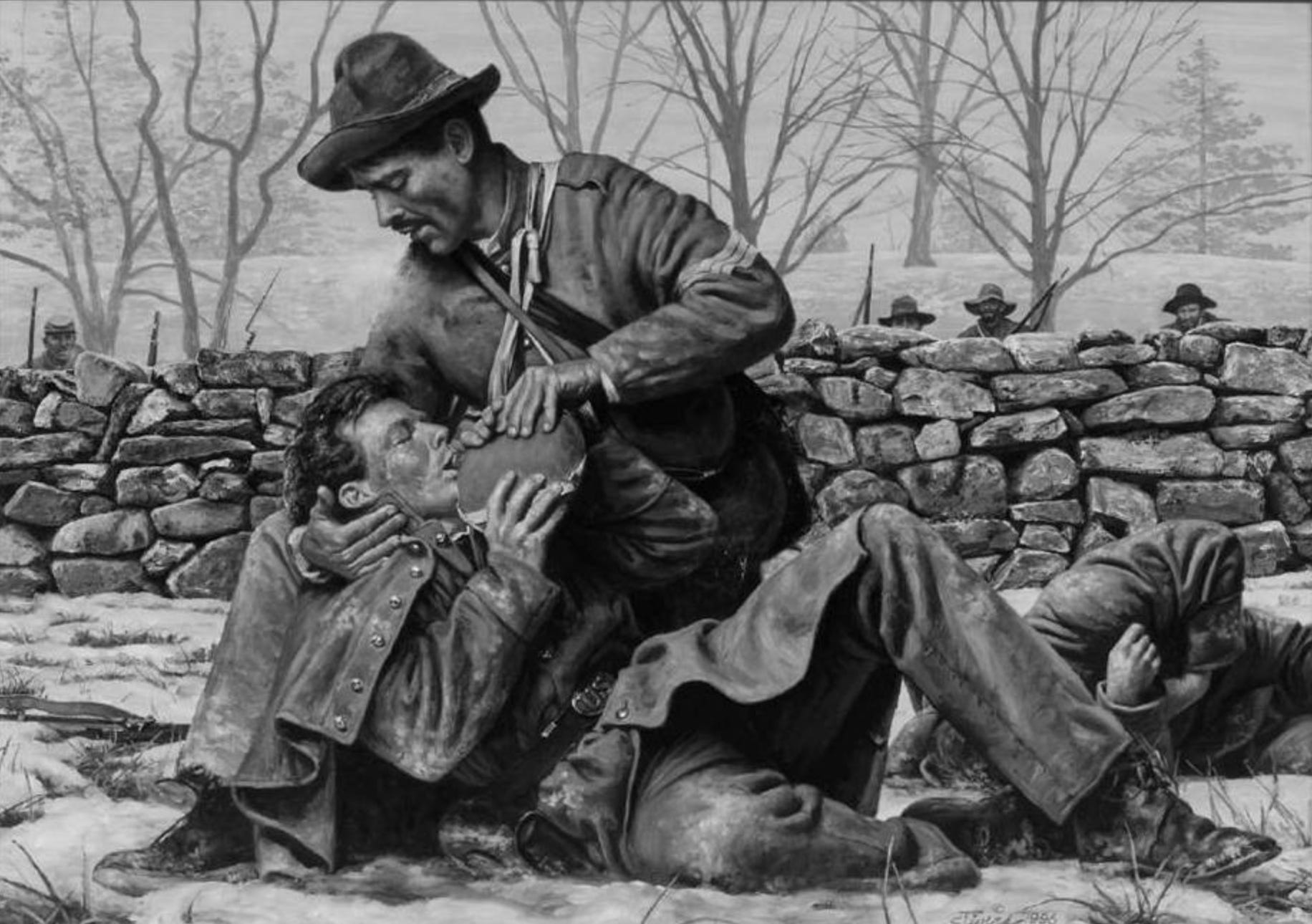 After three days, the battlefield between the two armies was littered with thousands of the dead and dying, the air filled with voices crying out in pain, moaning and thirsting for water. At which point Sergeant Richard Kirkland, Company G, 2nd South Carolina Infantry gathered as many canteens as he could carry, and stepped into the cold terror of no man’s land sandwiched between the two watching armies.
